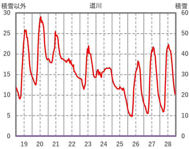 | 日 | 時 | 気温 | 降水 | 風向/風速 | 日照 | 積雪 | 降雪 |