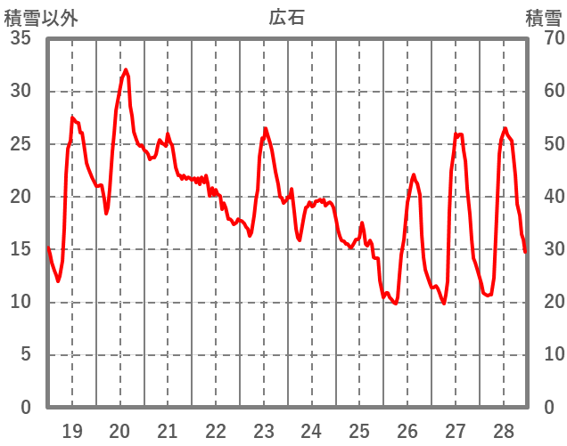 | 日 | 時 | 気温 | 降水 | 風向/風速 | 日照 | 積雪 | 降雪 |