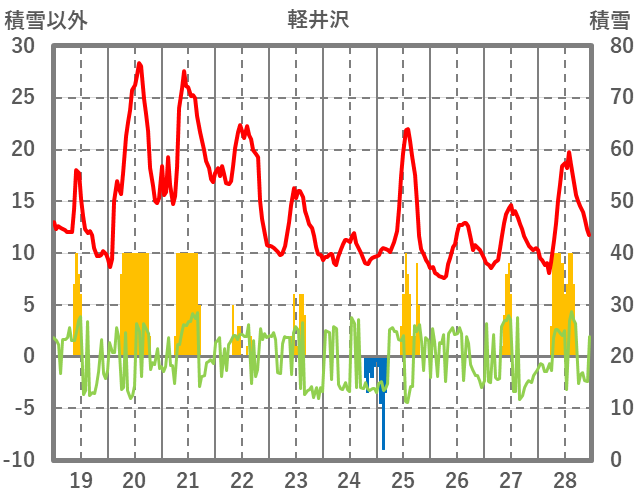 | 日 | 時 | 気温 | 降水 | 風向/風速 | 日照 | 積雪 | 降雪 |