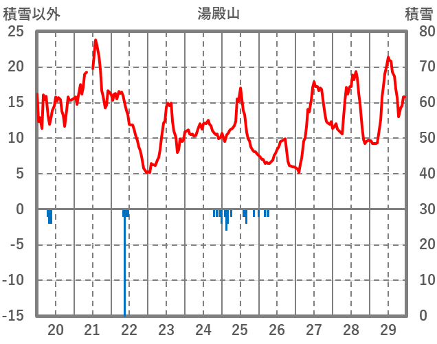 | 日 | 時 | 気温 | 降水 | 風向/風速 | 日照 | 積雪 | 降雪 |