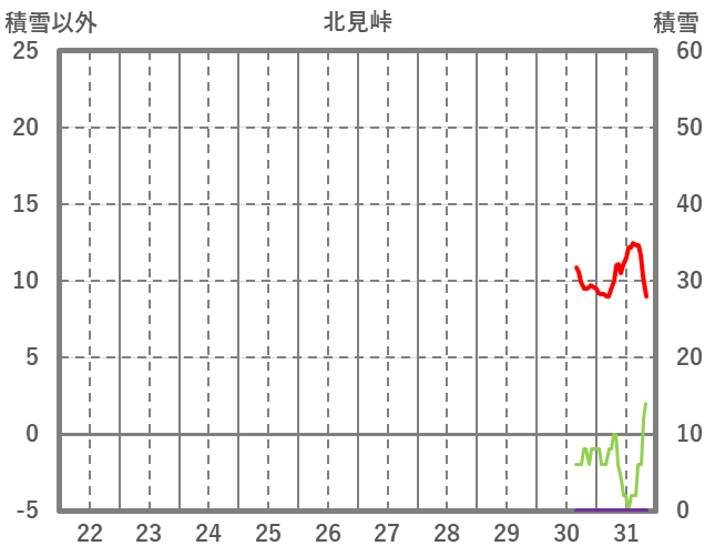 | 日 | 時 | 気温 | 降水 | 風向/風速 | 日照 | 積雪 | 降雪 |
