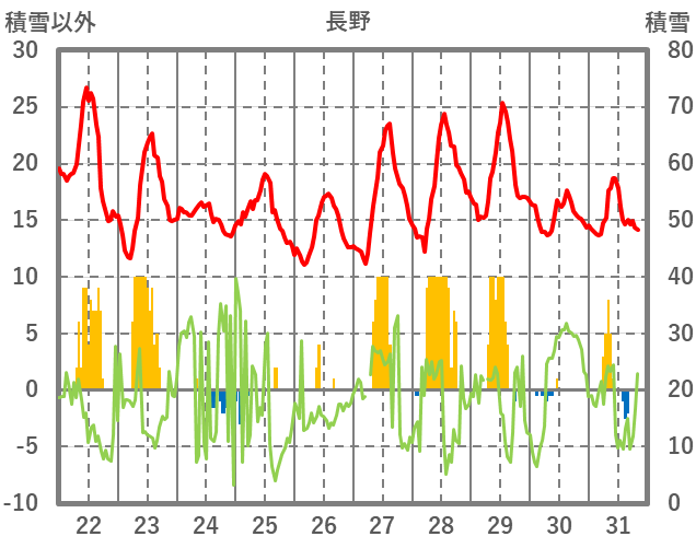 | 日 | 時 | 気温 | 降水 | 風向/風速 | 日照 | 積雪 | 降雪 |