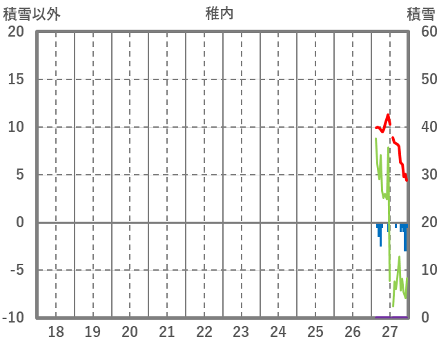 | 日 | 時 | 気温 | 降水 | 風向/風速 | 日照 | 積雪 | 降雪 |