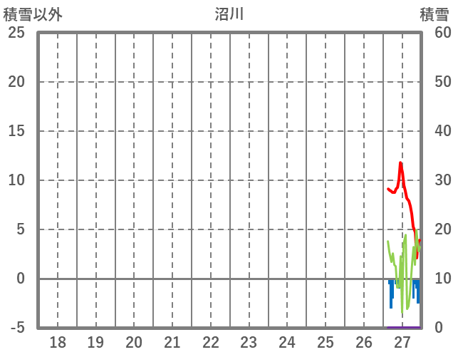 | 日 | 時 | 気温 | 降水 | 風向/風速 | 日照 | 積雪 | 降雪 |