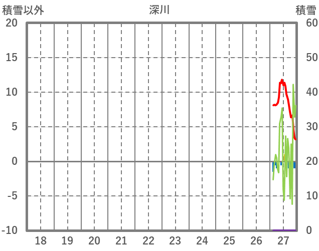 | 日 | 時 | 気温 | 降水 | 風向/風速 | 日照 | 積雪 | 降雪 |