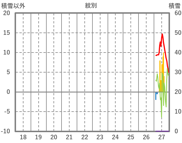 | 日 | 時 | 気温 | 降水 | 風向/風速 | 日照 | 積雪 | 降雪 |