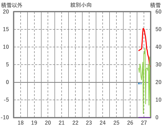 | 日 | 時 | 気温 | 降水 | 風向/風速 | 日照 | 積雪 | 降雪 |
