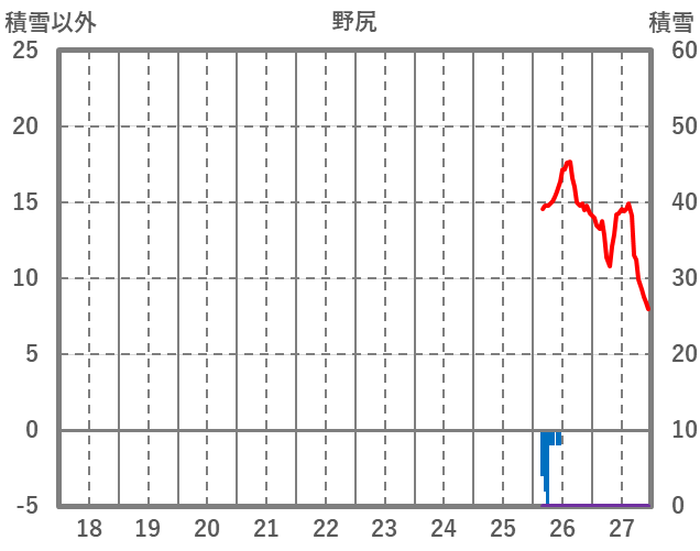 | 日 | 時 | 気温 | 降水 | 風向/風速 | 日照 | 積雪 | 降雪 |