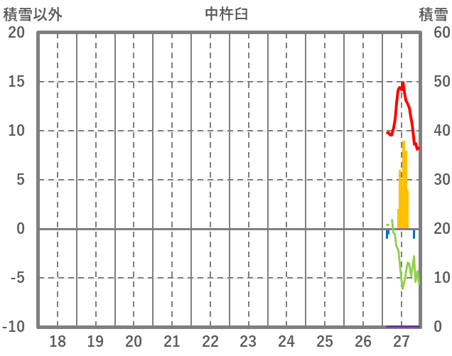 | 日 | 時 | 気温 | 降水 | 風向/風速 | 日照 | 積雪 | 降雪 |