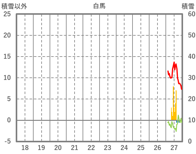 | 日 | 時 | 気温 | 降水 | 風向/風速 | 日照 | 積雪 | 降雪 |