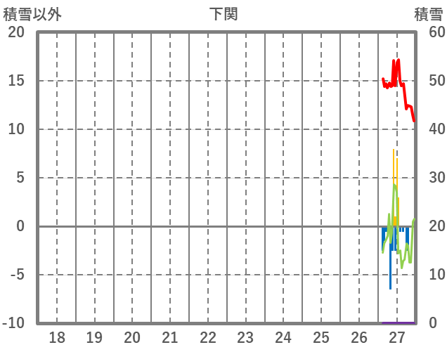 | 日 | 時 | 気温 | 降水 | 風向/風速 | 日照 | 積雪 | 降雪 |