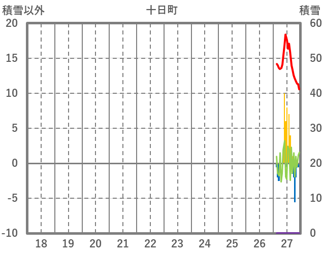 | 日 | 時 | 気温 | 降水 | 風向/風速 | 日照 | 積雪 | 降雪 |