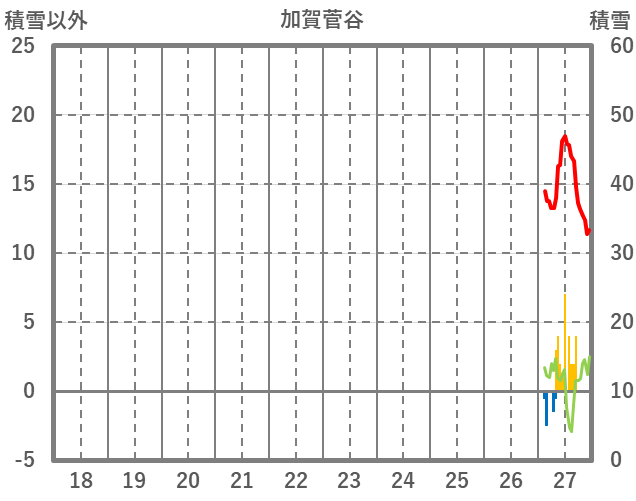 | 日 | 時 | 気温 | 降水 | 風向/風速 | 日照 | 積雪 | 降雪 |