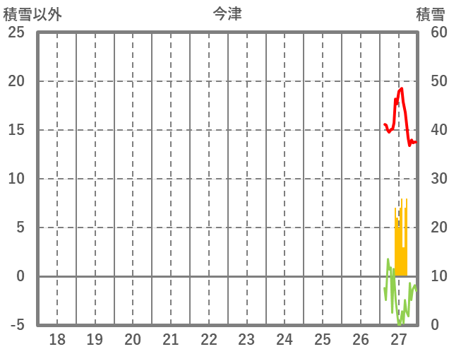 | 日 | 時 | 気温 | 降水 | 風向/風速 | 日照 | 積雪 | 降雪 |