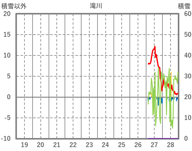 | 日 | 時 | 気温 | 降水 | 風向/風速 | 日照 | 積雪 | 降雪 |