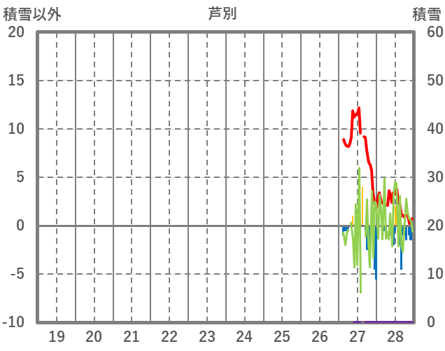 | 日 | 時 | 気温 | 降水 | 風向/風速 | 日照 | 積雪 | 降雪 |