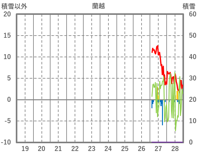 | 日 | 時 | 気温 | 降水 | 風向/風速 | 日照 | 積雪 | 降雪 |