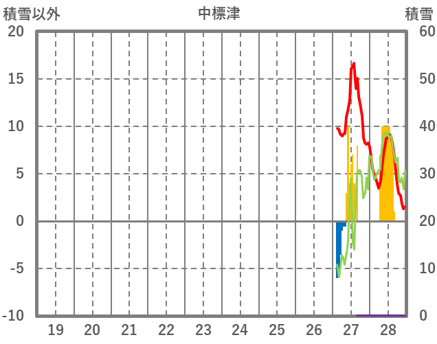 | 日 | 時 | 気温 | 降水 | 風向/風速 | 日照 | 積雪 | 降雪 |