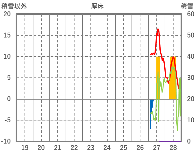 | 日 | 時 | 気温 | 降水 | 風向/風速 | 日照 | 積雪 | 降雪 |