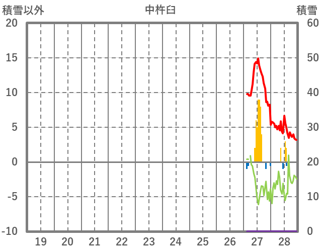 | 日 | 時 | 気温 | 降水 | 風向/風速 | 日照 | 積雪 | 降雪 |