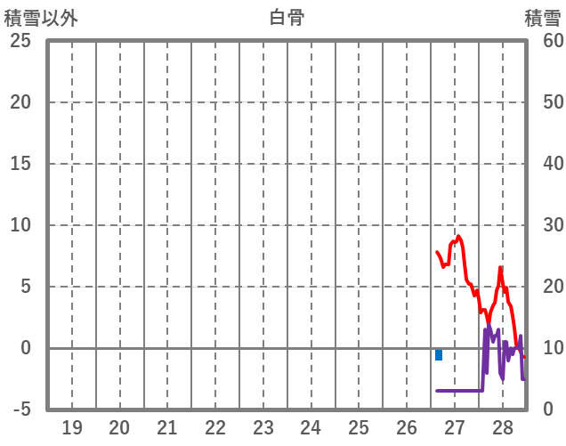 | 日 | 時 | 気温 | 降水 | 風向/風速 | 日照 | 積雪 | 降雪 |