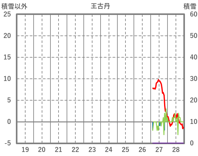 | 日 | 時 | 気温 | 降水 | 風向/風速 | 日照 | 積雪 | 降雪 |