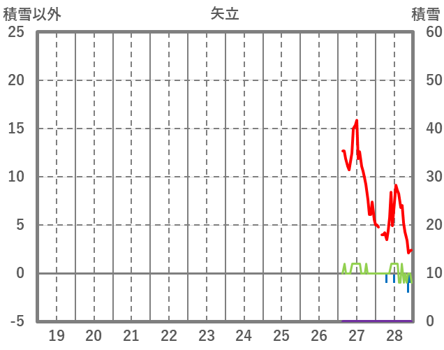 | 日 | 時 | 気温 | 降水 | 風向/風速 | 日照 | 積雪 | 降雪 |
