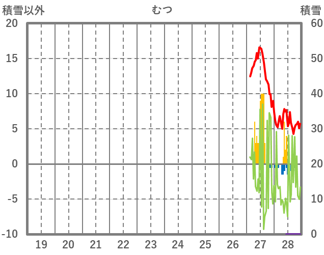 | 日 | 時 | 気温 | 降水 | 風向/風速 | 日照 | 積雪 | 降雪 |
