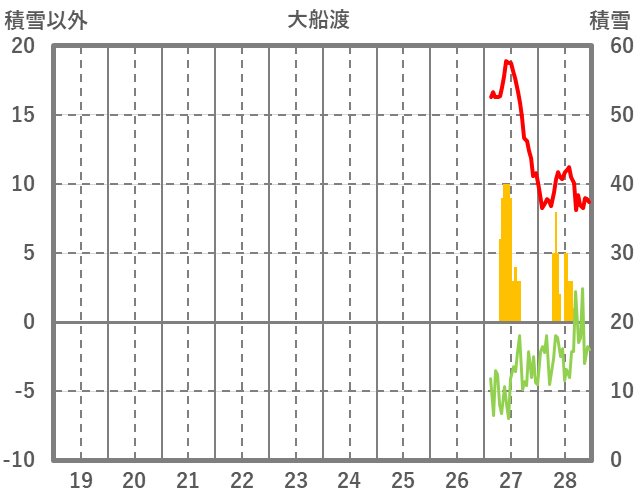 | 日 | 時 | 気温 | 降水 | 風向/風速 | 日照 | 積雪 | 降雪 |