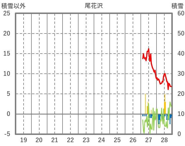 | 日 | 時 | 気温 | 降水 | 風向/風速 | 日照 | 積雪 | 降雪 |