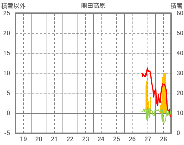 | 日 | 時 | 気温 | 降水 | 風向/風速 | 日照 | 積雪 | 降雪 |