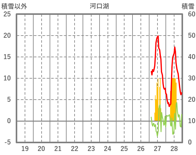 | 日 | 時 | 気温 | 降水 | 風向/風速 | 日照 | 積雪 | 降雪 |