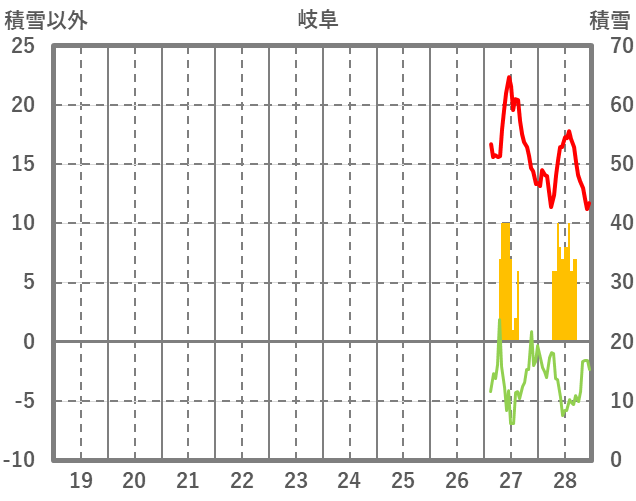 | 日 | 時 | 気温 | 降水 | 風向/風速 | 日照 | 積雪 | 降雪 |