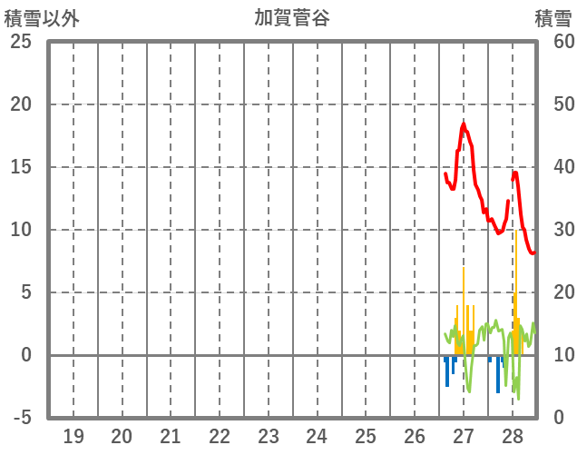 | 日 | 時 | 気温 | 降水 | 風向/風速 | 日照 | 積雪 | 降雪 |