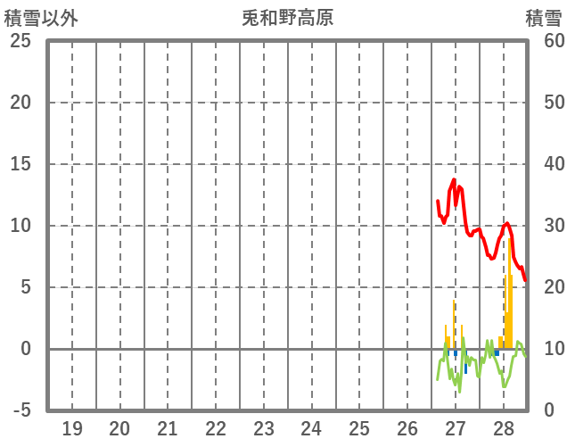 | 日 | 時 | 気温 | 降水 | 風向/風速 | 日照 | 積雪 | 降雪 |