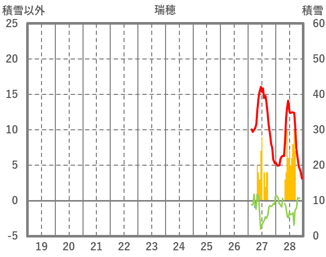 | 日 | 時 | 気温 | 降水 | 風向/風速 | 日照 | 積雪 | 降雪 |