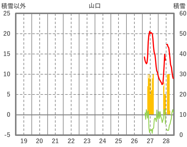 | 日 | 時 | 気温 | 降水 | 風向/風速 | 日照 | 積雪 | 降雪 |