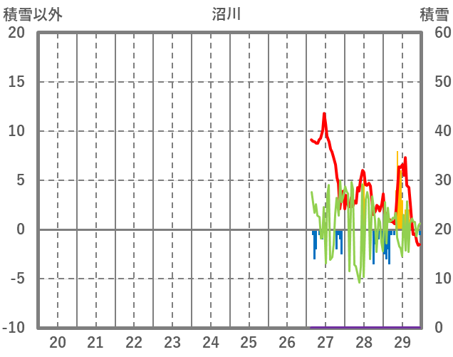 | 日 | 時 | 気温 | 降水 | 風向/風速 | 日照 | 積雪 | 降雪 |