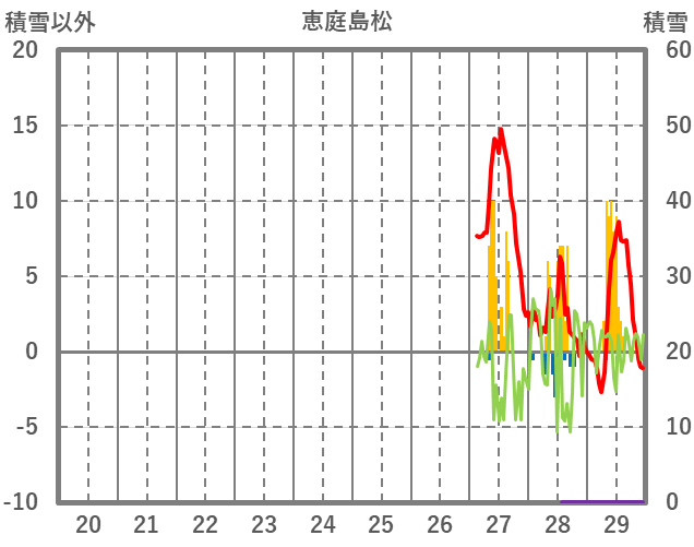 | 日 | 時 | 気温 | 降水 | 風向/風速 | 日照 | 積雪 | 降雪 |