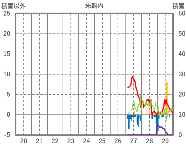 | 日 | 時 | 気温 | 降水 | 風向/風速 | 日照 | 積雪 | 降雪 |