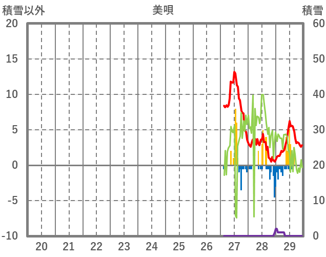 | 日 | 時 | 気温 | 降水 | 風向/風速 | 日照 | 積雪 | 降雪 |