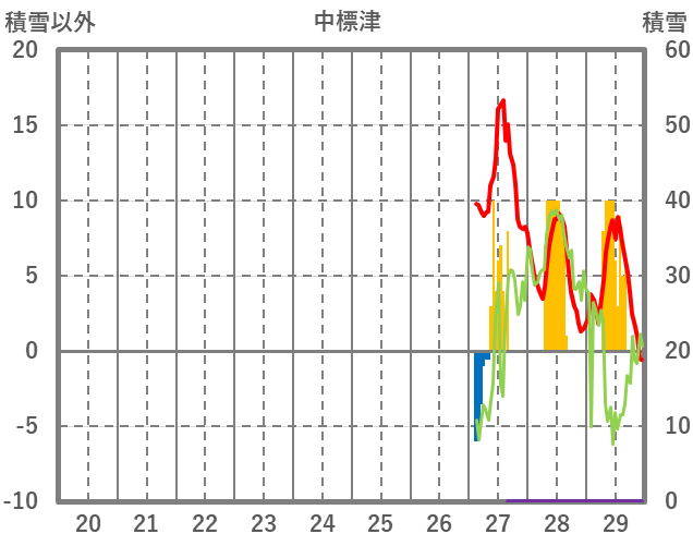 | 日 | 時 | 気温 | 降水 | 風向/風速 | 日照 | 積雪 | 降雪 |