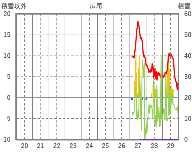 | 日 | 時 | 気温 | 降水 | 風向/風速 | 日照 | 積雪 | 降雪 |