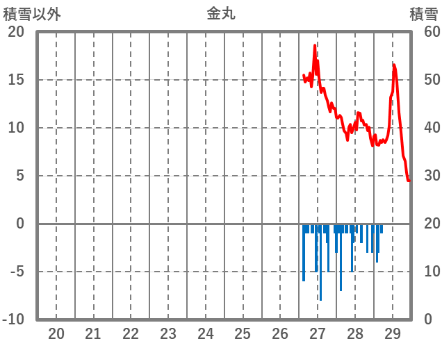 | 日 | 時 | 気温 | 降水 | 風向/風速 | 日照 | 積雪 | 降雪 |