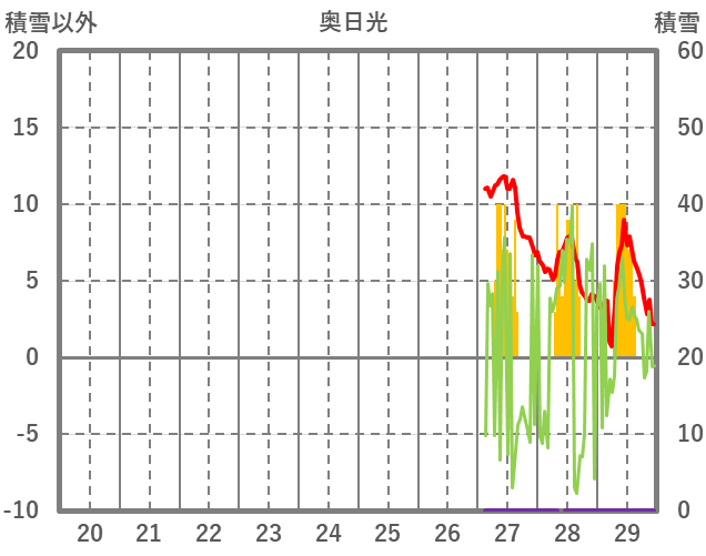 | 日 | 時 | 気温 | 降水 | 風向/風速 | 日照 | 積雪 | 降雪 |