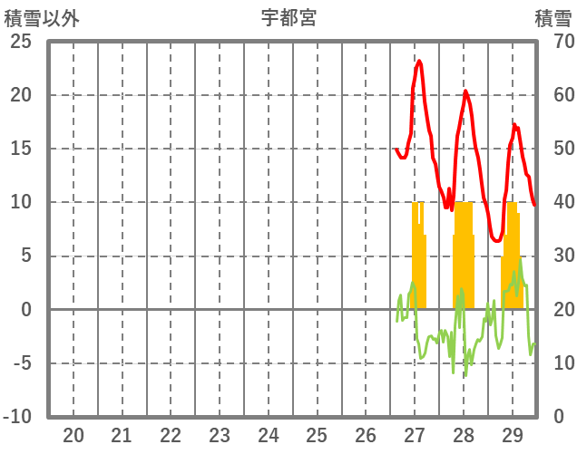 | 日 | 時 | 気温 | 降水 | 風向/風速 | 日照 | 積雪 | 降雪 |