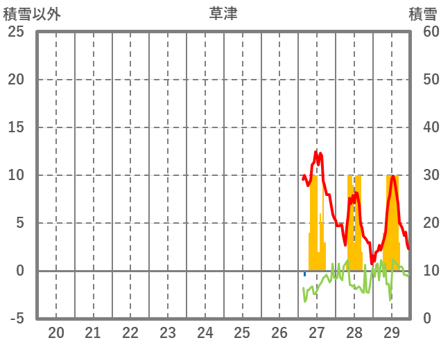 | 日 | 時 | 気温 | 降水 | 風向/風速 | 日照 | 積雪 | 降雪 |