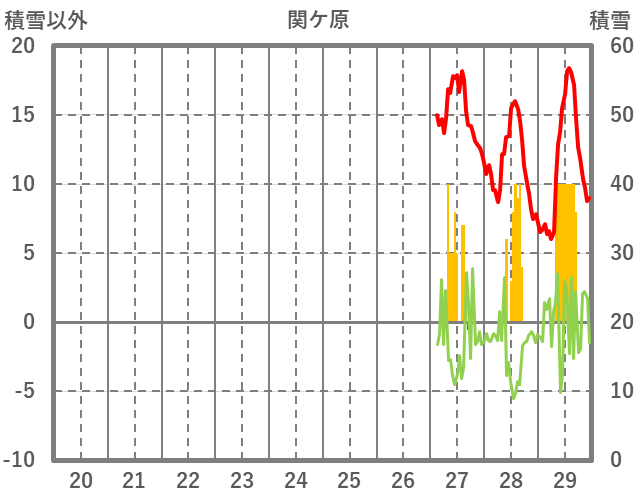 | 日 | 時 | 気温 | 降水 | 風向/風速 | 日照 | 積雪 | 降雪 |