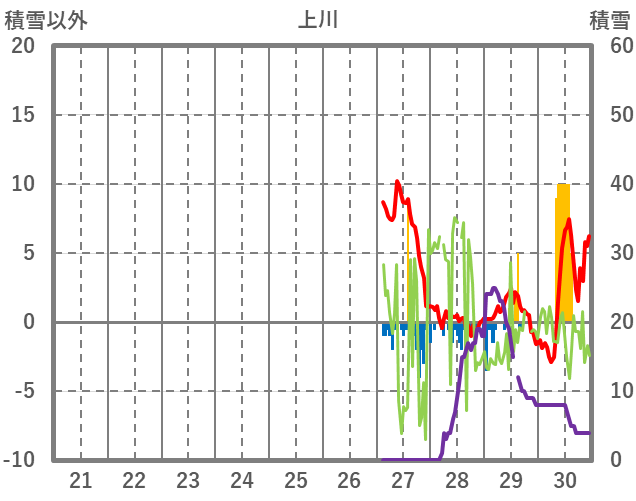 | 日 | 時 | 気温 | 降水 | 風向/風速 | 日照 | 積雪 | 降雪 |