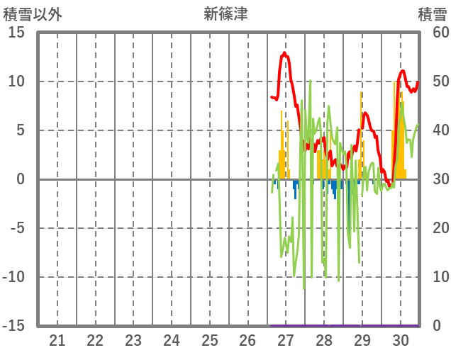 | 日 | 時 | 気温 | 降水 | 風向/風速 | 日照 | 積雪 | 降雪 |